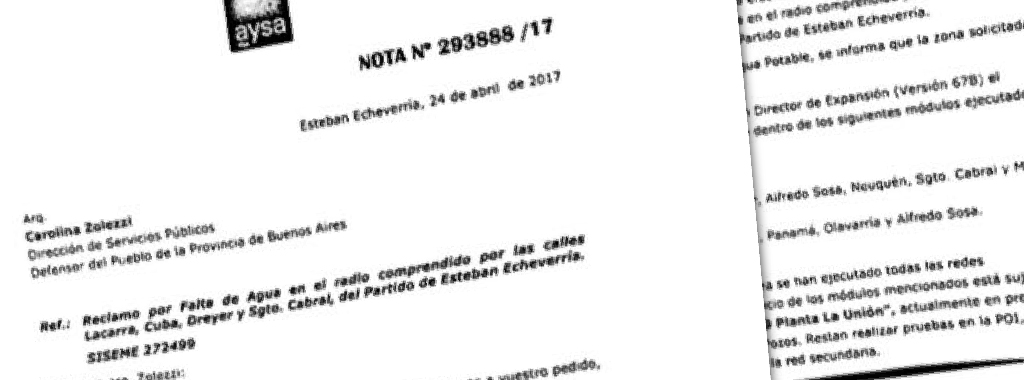 “La empresa se escuda en que las demoras en la finalización son porque pertenecen a un plan director mucho más amplio”, remarcó el Defensor Adjunto y subrayó que “Aysa se comprometió por escrito a normalizar el servicio en el segundo semestre de 2017”.