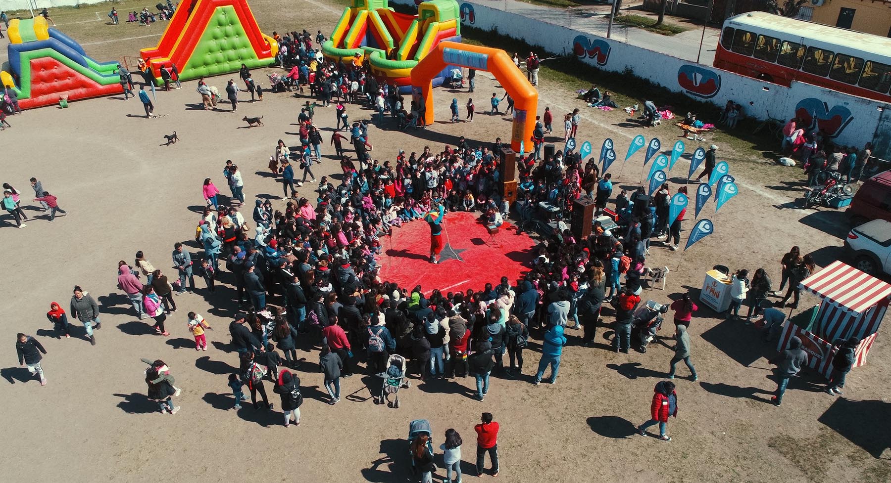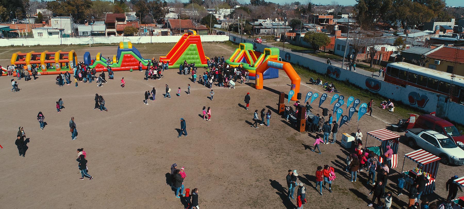 Entre las actividades se instalaron inflables, stands con juegos de ingenio y entretenimiento, como también un espacio de arte para los más chicos. Además, se brindó a las familias jugos, sandwuich, y una merienda.