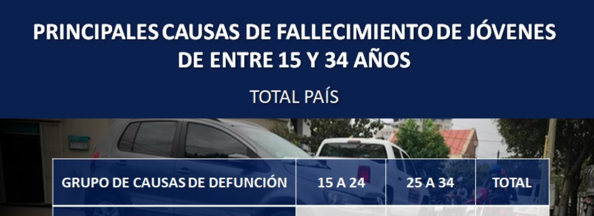 En la Argentina, los accidentes de tránsito son una de las dos principales causas de fallecimientos de jóvenes de entre 15 y 34 años. Por día, en nuestro país, muere un promedio de 4 jóvenesde entre 15 y 34 años en accidentes de tránsito.